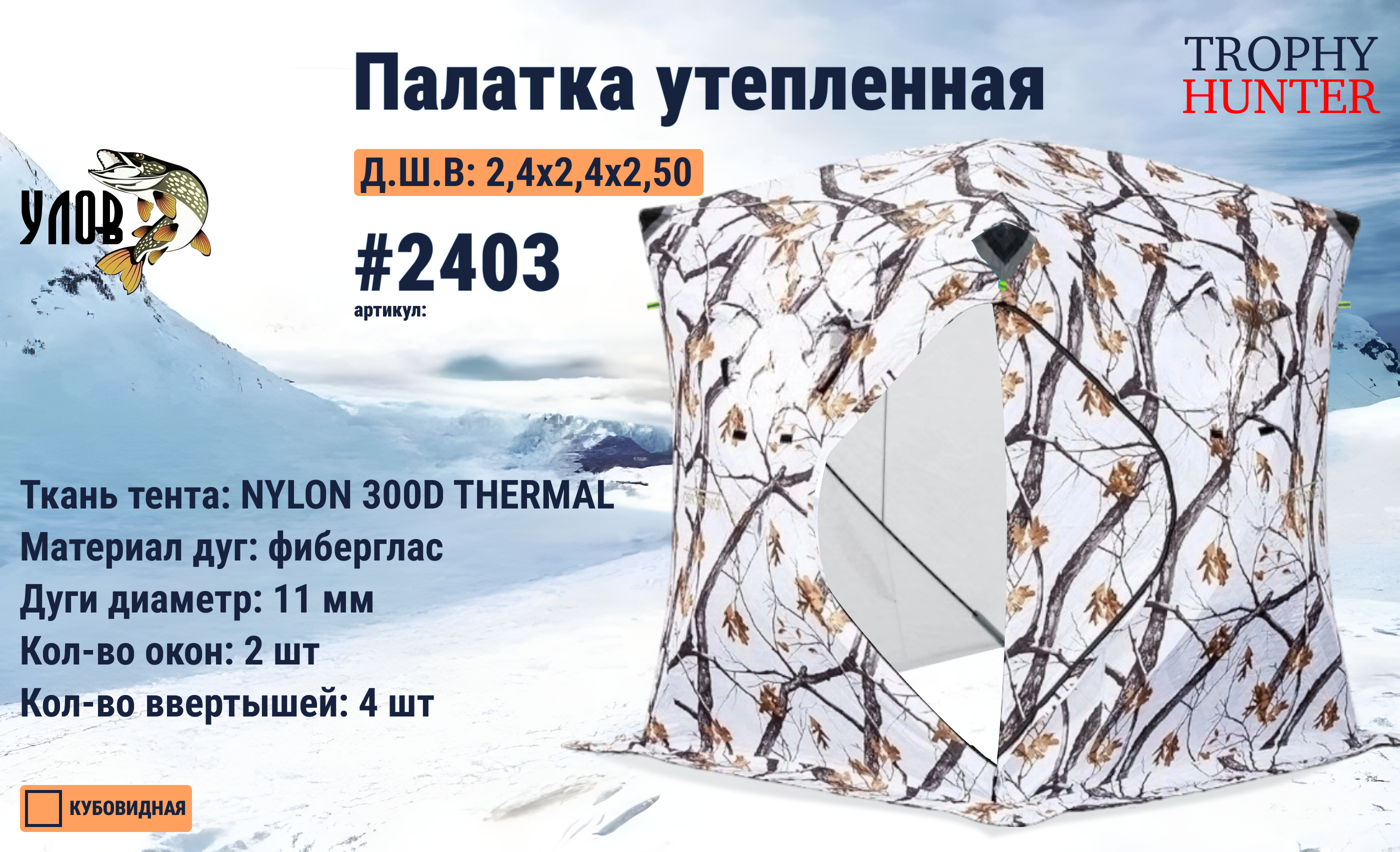 Зимняя палатка КУБ #2403 утеплённый (без пола) "УЛОВ" (цвет: зимний лес) размер: 2.4*2.4*2.5м